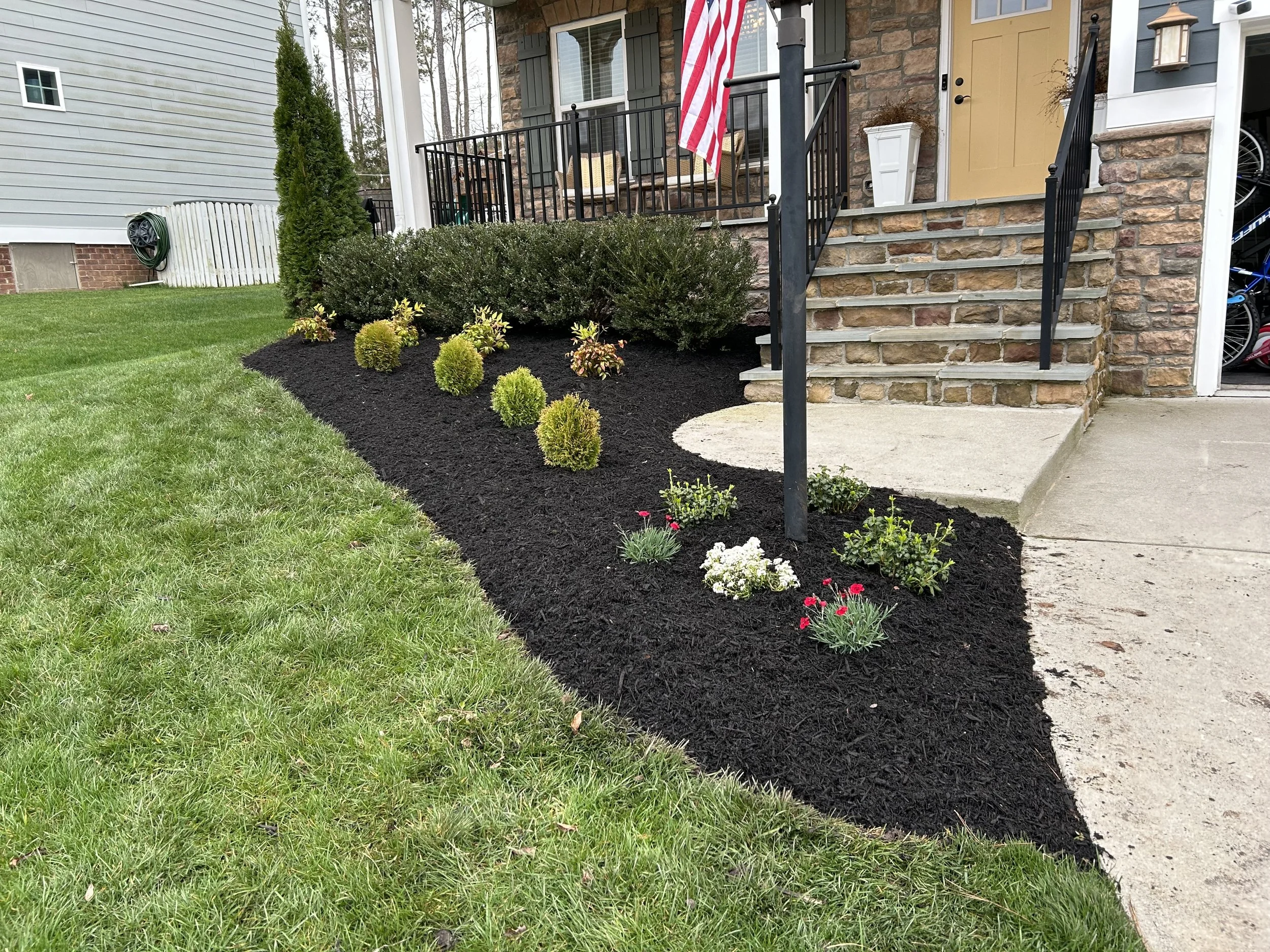 We mechanically edge beds and then apply a premium double shredded hardwood mulch with the option of natural, dyed brown or black.